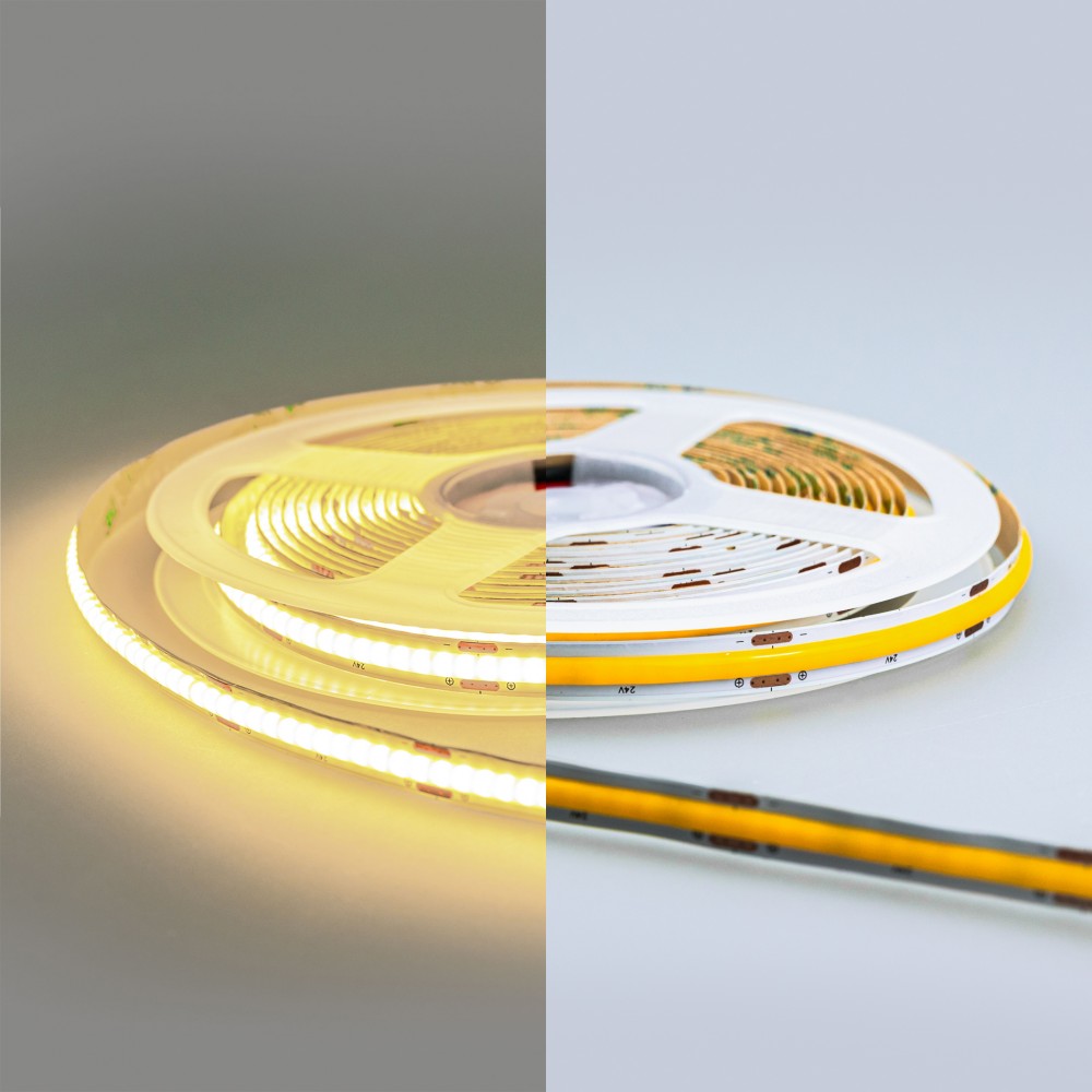 Лента COB сплошной засветки без видимых светодиодов. Кристаллы CSP 312 шт/м. Цвет свечения БЕЛЫЙ 4500K, высокий индекс цветопередачи CRI>90, световой поток 1080 Лм/м, угол 140°. Диапазон рабочих температур: -25…+60C⁰. Степень защиты от пыли и влаги IP33. Мощность 10 Вт/м, питание 24 В. Мин.отрезок 45 мм. Скотч 3М для установки. Пакет 5м. Шаг резки 5см. Цена за 1м. Гарантия 2 года. Обязательна установка на профиль.